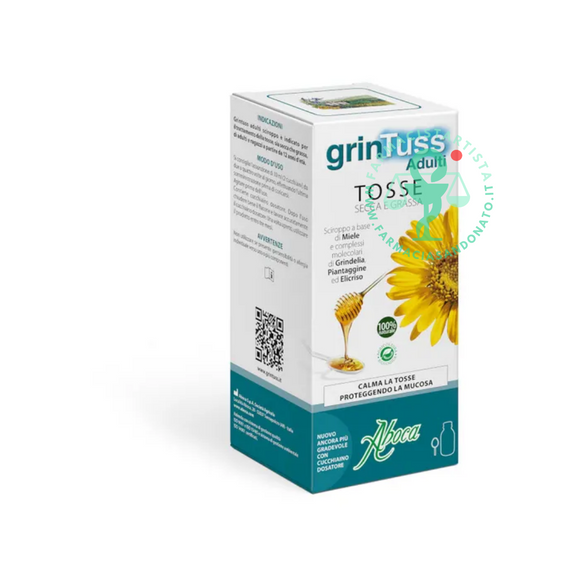 Grintuss adulti sciroppo è indicato per il trattamento della tosse, sia secca che grassa, di adulti e ragazzi a partire da 12 anni d’età. Protegge la mucosa, calmando l’irritazione, idrata e favorisce l’eliminazione del muco mediante i seguenti meccanismi d'azione: