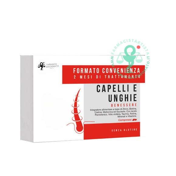 Integratore alimentare a base di zinco, biotina, cistina, metionina ed equiseto. Con acido pantotenico, Vitis vinifera, taurina, rutina, minerali e vitamine.