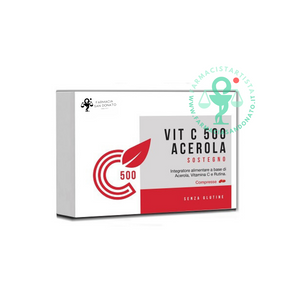 Integratore alimentare a base di acerola, vitamina C e rutina. L'acerola, fonte naturale di vitamina C, contribuisce al mantenimento delle naturali difese dell'organismo ed è utile per un'azione di sostegno e ricostituente. Completa la formula la vitamina C, che contribuisce alla normale funzione del sistema immunitario, alla riduzione della stanchezza e dell'affaticamento, al normale metabolismo energetico, al normale funzionamento del sistema nervoso e alla normale funzione psicologica. Inoltre, la vitamina C accresce l'assorbimento del ferro, contribuisce alla normale formazione del collagene per la normale funzione di gengive, pelle, vasi sanguigni, cartilagini e ossa ed infine contribuisce alla protezione delle cellule dallo stress ossidativo. Contiene rutina.