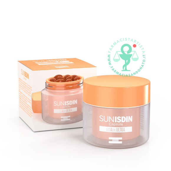 Integratore alimentare a base di polypodium leucatomos poir., tè verde, vitis vinifera, estratti vegetali ricchi di antiossidanti, vitamina C, vitamina E, selenio, che contribuiscono alla protezione delle cellule dallo stress ossidativo, carotenoidi (luteina, licopene, betacarotene), che contribuiscono al mantenimento di una pelle normale, e vitamina D, 100% del valore nutritivo di riferimento, che contribuisce alla normale funzione del sistema immunitario.